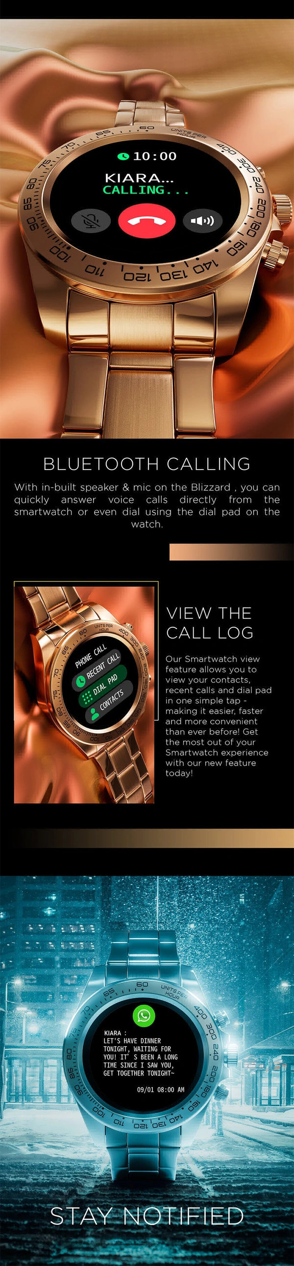 - Bluetooth Calling: Stay connected effortlessly with the convenience of hands-free calls directly from your wrist.